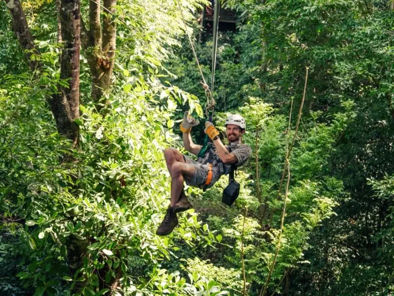 Fly through the forest from tree to tree. Trek on foot through monkey territory 45 mins to a 7-cable car journey over valleys and streams. Swing from 13 ground-based platforms and one treetop platform overlooking the coast. Duration: 2-3 hours Min: 2 people Max: 8 Price: $77 pp