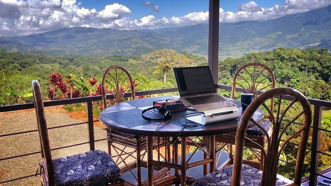 Take it easy at this unique & tranquil getaway. Commune w nature in our fully-equipped outdoor kitchen, shower, living & dining area surrounded by expansive valley & mountain views. Enjoy the comforts of our indoor BR w AC, queen bed, and dedicated workspace w fiber optic. Luxuriate in our 6 ft. tub. Enjoy daily visits of spectacular tropical birds like toucans, parrots, aracari, and more.