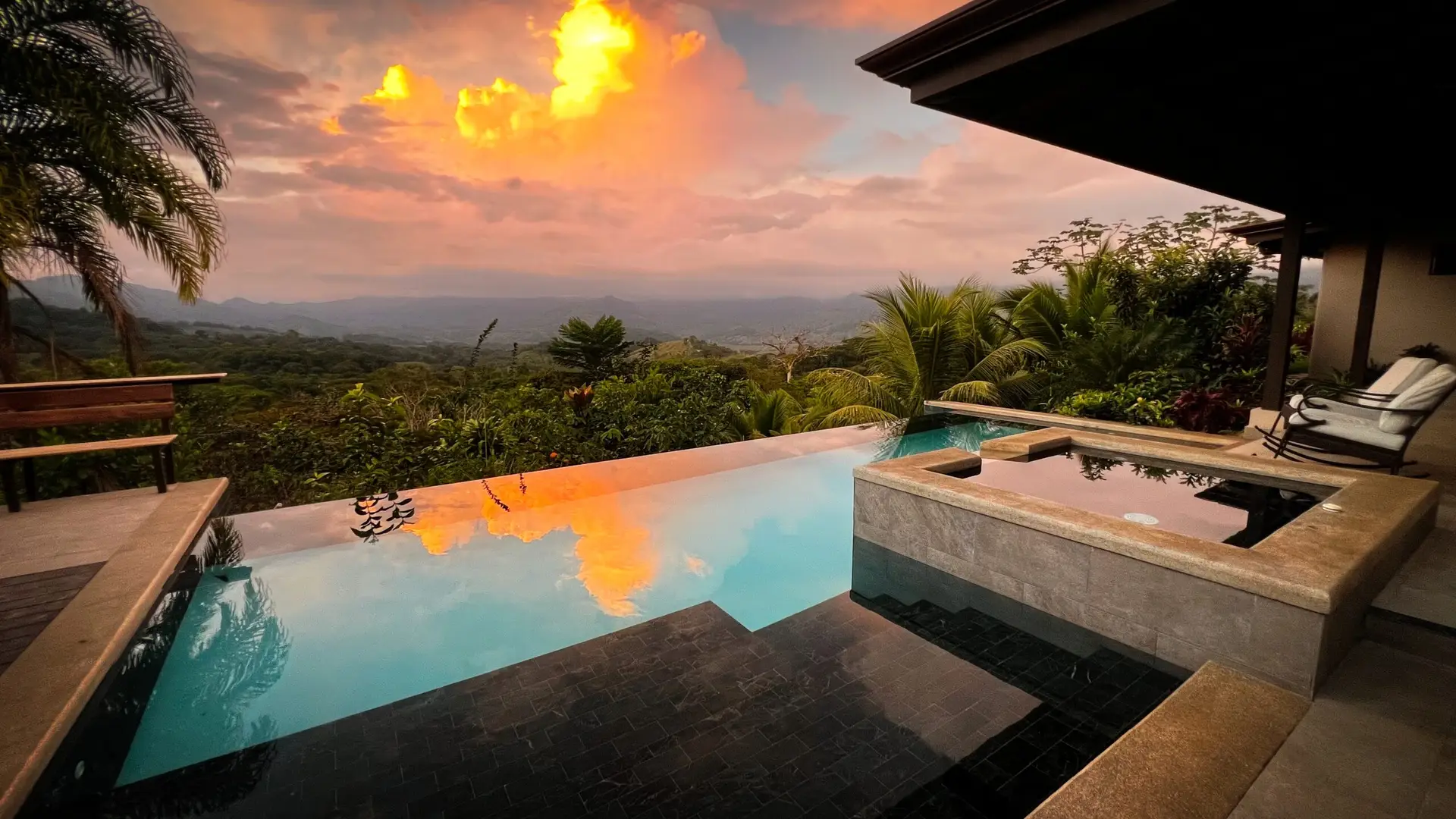 Outside, your private terrace includes a full kitchen & BBQ area, plus dining & sitting areas. The terrace looks out across lush gardens and to a grand vista of distant mountains. It’s an ideal spot for morning coffee or a quiet evening drink as the jungle comes alive with birds and sunset colors.